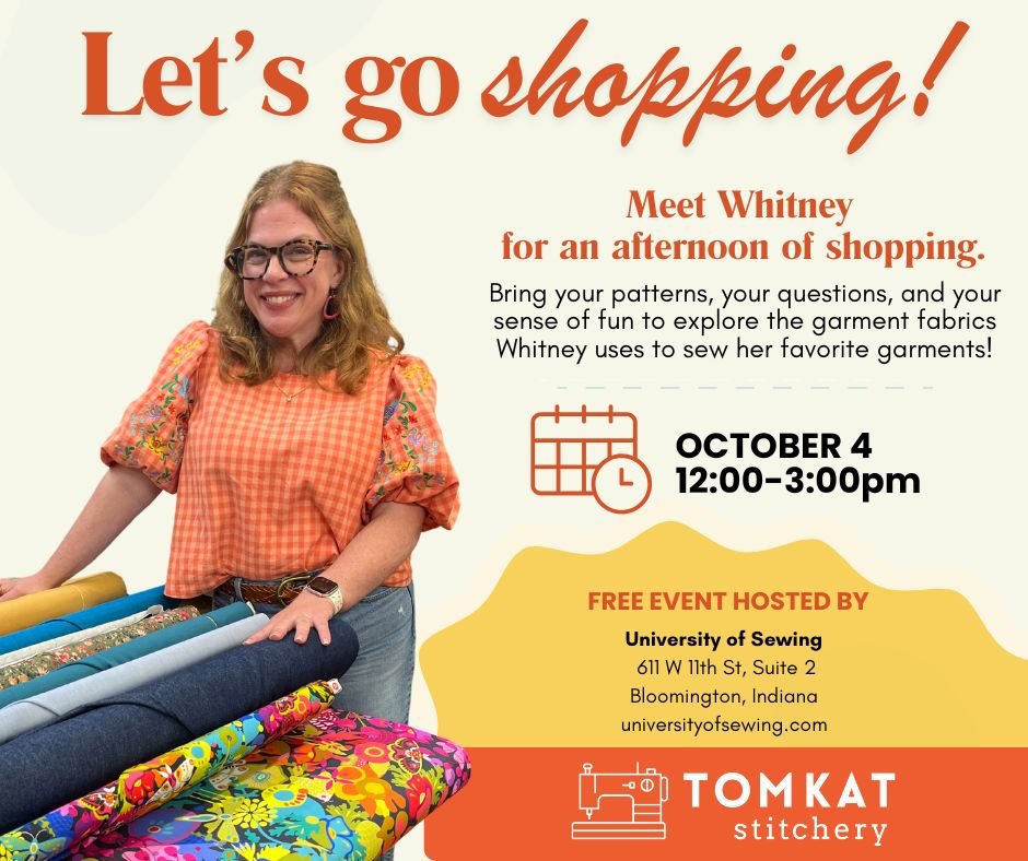 | Details: | Whitney Luckenbill of Tomkat Stitchery is visiting the University of Sewing! Bring your garment pattern questions, and let Whitney help you pick the exact right fabrics for your next projects! It's capsule wardrobe season, and it's time to make your clothes reflect YOU!![]() |