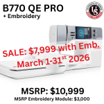 - Customizable Quilting Stitches: With the BSR 3 Mode, you will be able to set your stitch length to 2 or 4 stitches per inch for easy quilt basting. Furthermore, the B 770 QE PRO offers a total of 76 quilting stitches.