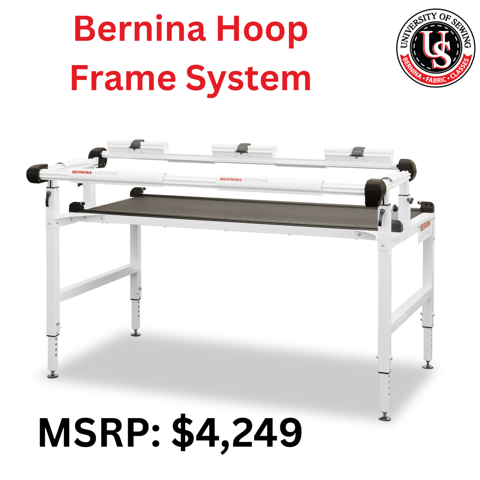 - Frame height is adjustable for seated or standing quilting options.