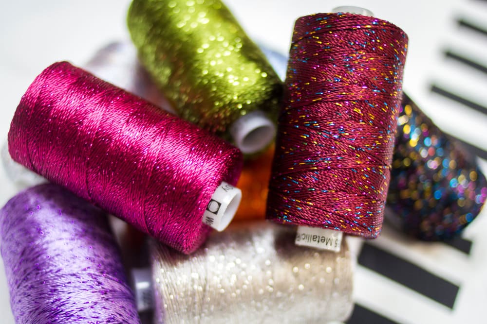 Isacord thread is an all purpose polyester thread appropriate for machine stitching and machine embroidery. It does have a shine.